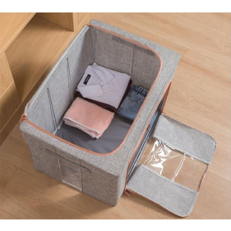 Cutia prezinta un design stivuibil si pliabil, potrivit pentru depozitarea hainelor.