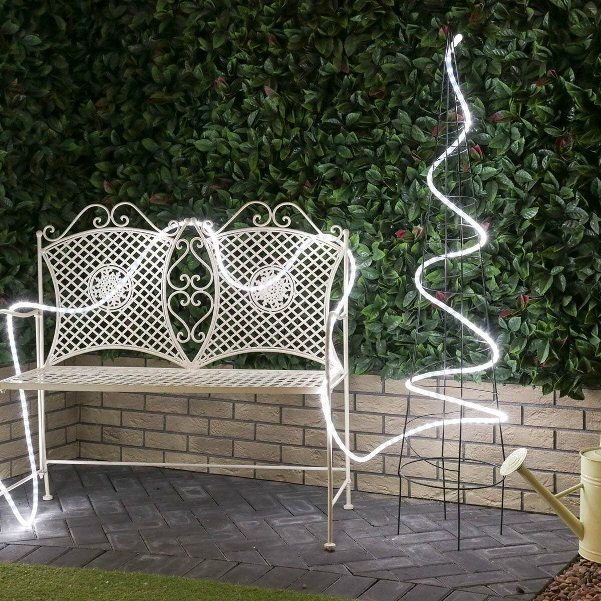 Instalatia luminoasa este de tip furtun luminos si are 96 leduri alb rece, cu fir realizat dintr-un plastic anti-inghet, iar firele electrice sunt fabricate din cupru.